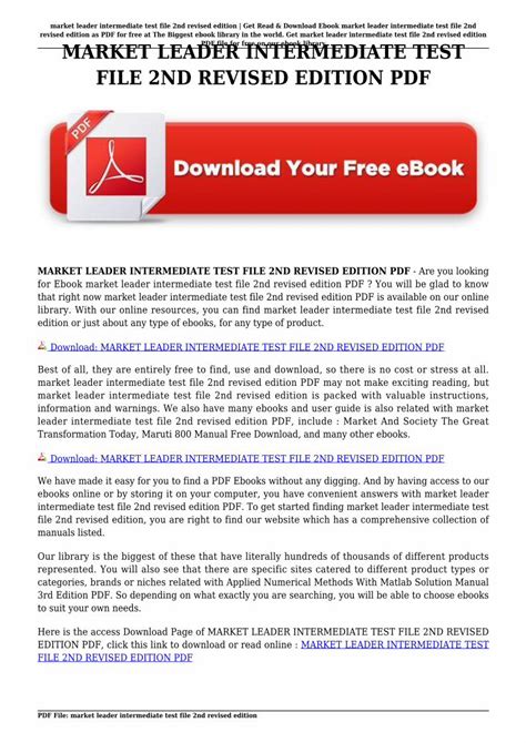 Free PDF Market Leader Intermediate Test File (2nd Revised edition) Doc BookBoon